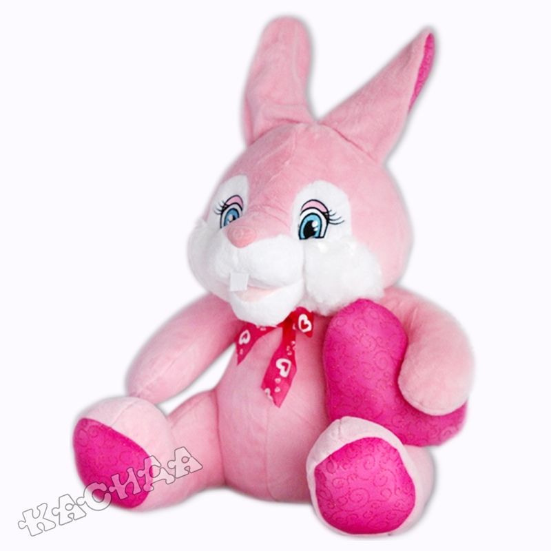 АМЕК Зайче със сърце и звук - 50 см. *розово*