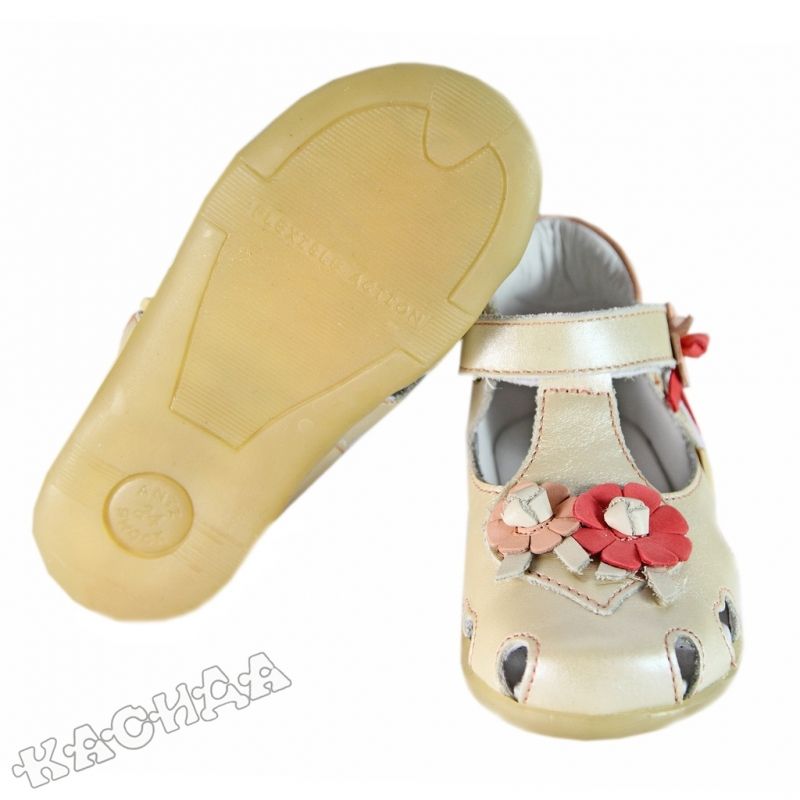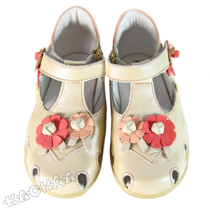 Детските обувки са изработени от висококачествени естествени материали и са така проектирани, че да са максимално удобни на детското краче, осигурявайки му сигурност и стабилност. Закопчават се посредством велкро лепенка и са изработени от естествена кожа. Подметката е стабилна, гъвкава и леко повдигната, за да не се нараняват детските пръстчета и износва бързо обувката.