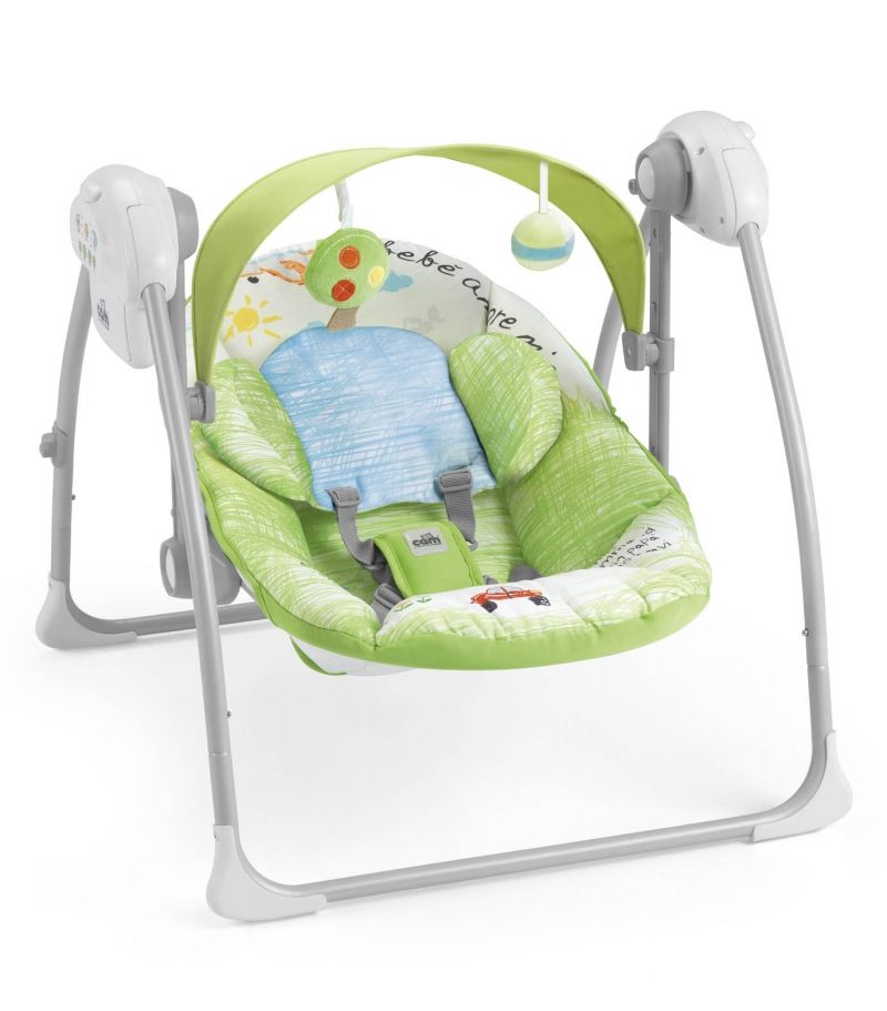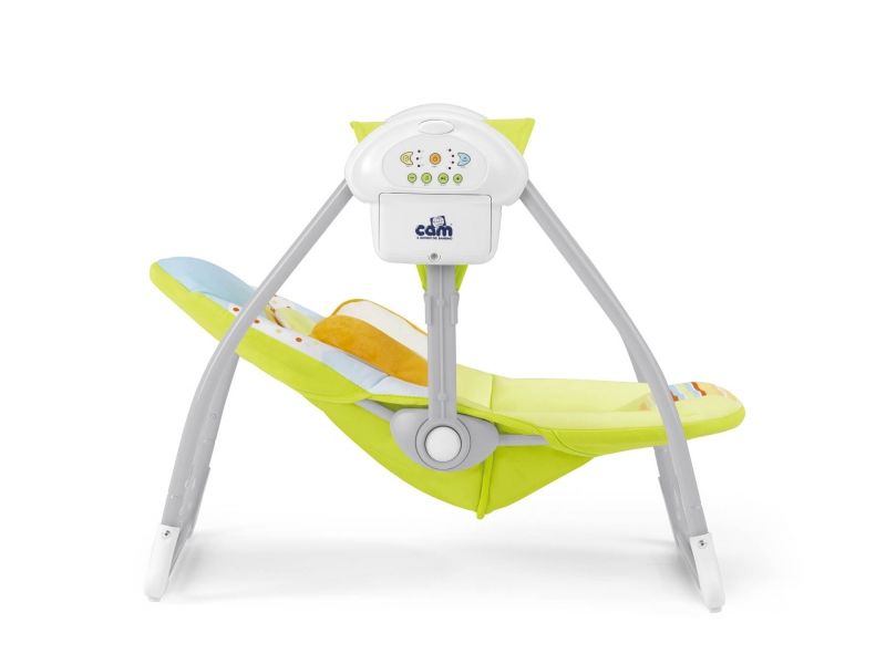 Бебешката люлка Sonnolento, Cam е подходяща за деца от 0 до 9 кг, има 2 положения на гръбчето, 3 скорости на люлеене, включени в комплекта 2 играчки, мелодии и звуци.