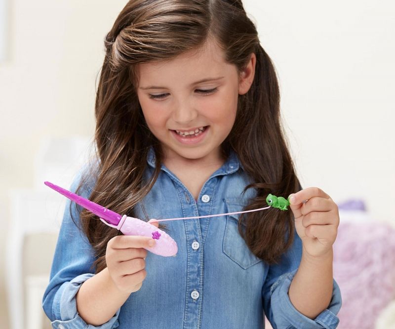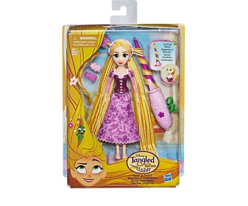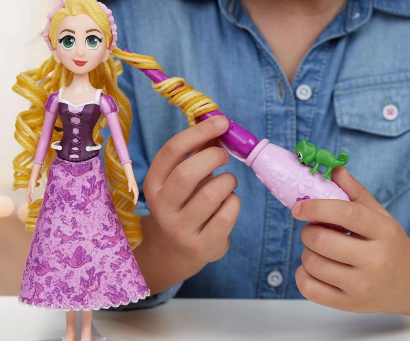 Рапунцел има аксесоари, с които Вашето дете ще може да променя прическата й по много начини. Това, което трябва да направи е да дръпне ролката, да захване косата за пръчката, да освободиш ролката и цилиндърът да завърти косата в прекрасни, издръжливи къдрици!