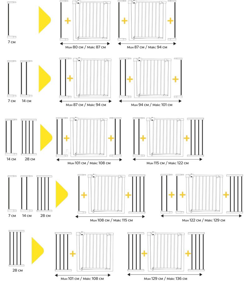 - Може да се удължи до 136 см с отделни удължители (не са включени) от 7, 14 и 28 см, които се продават отделно).