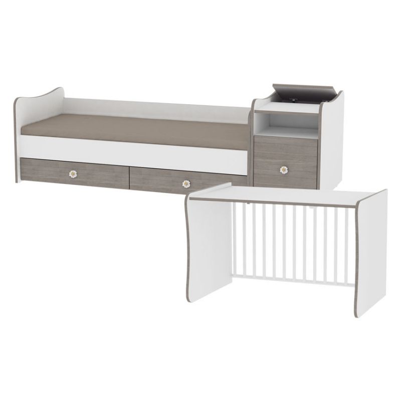 След като детето порасне неговата уютна кошарка <strong>Trend Plus, Bertoni Lorelli </strong>се преобразува в просторно юношеско легло, което с класическия си дизайн ще допадне на всеки тинейджър. При него се запазват двете големи чекмеджета. Освен това, за да допълните обзавеждането в детската стая останалите части от бебешката кошарка лесно се превръщат в бюро и шкаф с крачета за всички необходими детски неща. Другата иновация в модела обаче ще Ви изненада още повече освен по всички тези начини, той позволява да бъде използван и за 2 деца - във вид на юношеско легло и кошарка с долепен до нея скрин.</p>