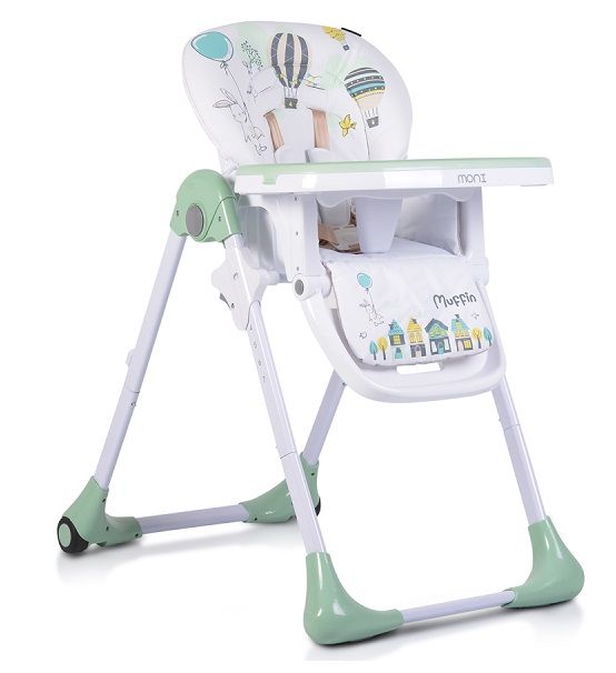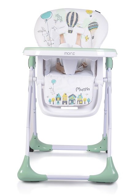 Детското столче за хранене Muffin подходящо за деца над 6-месечна възраст и с тегло до 15 килограма. Седалката е широка и удобна, разполага с непромокаема тапицерия с красив дизайн.