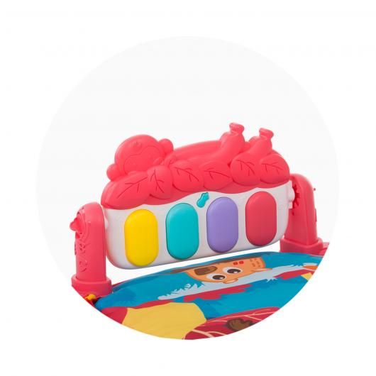 Постелката за активна гимнастика е цветна, забавна и ще привлече вниманието на вашето бебе. Чрез нея ще стимулирате неговите двигателни и разпознавателни умения. Мек материал, различни текстури и забавни играчки превръщат тази постелка в идеалното място за игри и гимнастика! Бебето ще се наслаждава на комфорт, цветни играчки и различни звуци, които ще обогатят и окуражат играта му.