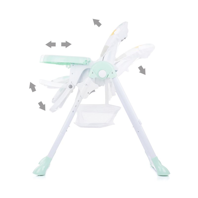 Забавлявайте се с детето и превърнете храненето в истински празник.  Столчето е подходящо за малчугани над 6 месечна възраст, които вече могат самостоятелно да стоят седнали. То разполага с практична табличка за хранене, удобна седалка с тапицерия, която може да се почиства по-лесно и 5 точков обезопасителен колан, който осигурява максимална сигурност и за най-активните деца. Други предимства, които очароват родителите са широката и удобна седалка, стабилната основа, кошът за аксесоари и компактното сгъване, което прави модела лесен за съхранение и употреба.