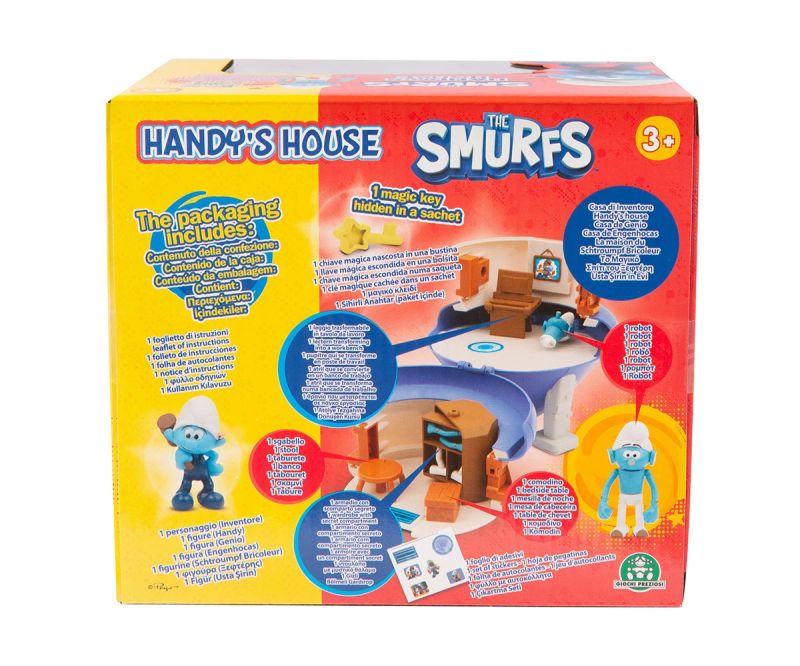 Къщата на Handy Smurf с мебели и аксесоари насърчава творческото мислене, фината моторика и ролевата игра, като същевременно носи радост и забавление. Децата могат да се потопят в света на смърфовете и да си измислят собствени истории с малката къщичка на Handy Smurf.