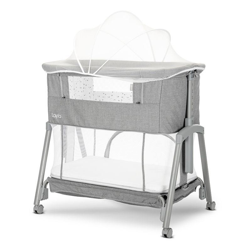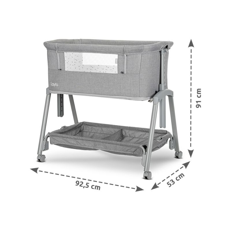 Тази мини кошара Layla на Lorelli е създадена, за да осигури сигурно, удобно и практично място за сън и игра на вашето бебе още от първите дни. Благодарение на регулирането на височината в 7 позиции, кошарата лесно се адаптира към различни легла и нуждите на родителите. Тя може да бъде закрепена стабилно към повечето легла с помощта на допълнителни ремъци, което осигурява лесен и безопасен нощен достъп до бебето – особено полезно през първите месеци след раждането. Подвижната страна с мрежеста част позволява отлична видимост и постоянен контакт с детето. Кошарата разполага с антирефлуксна система, която допринася за по-спокоен сън, както и с удобен матрак, осигуряващ необходимия комфорт. Практичният кош за аксесоари държи най-важните вещи винаги под ръка.